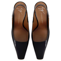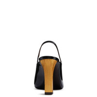 Product Details Slingback pumps in patent leather with square topline and toe, rear strap with elastic insert and knurled metal-effect block heel. - Black patent leather - 90 mm-high heel with gold-colored knurled metal effect. - Brown leather sole with logo ORIGIN: ITALY COLOR: BLACK