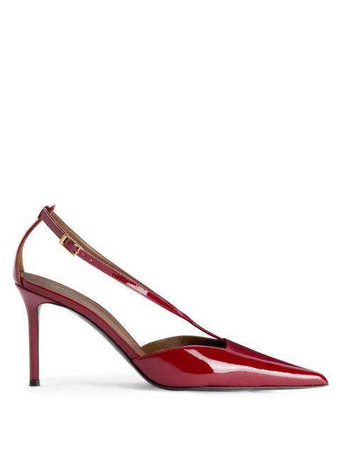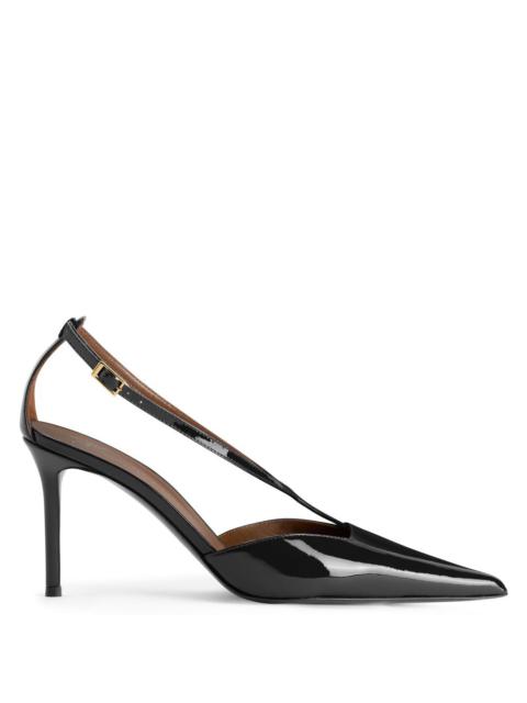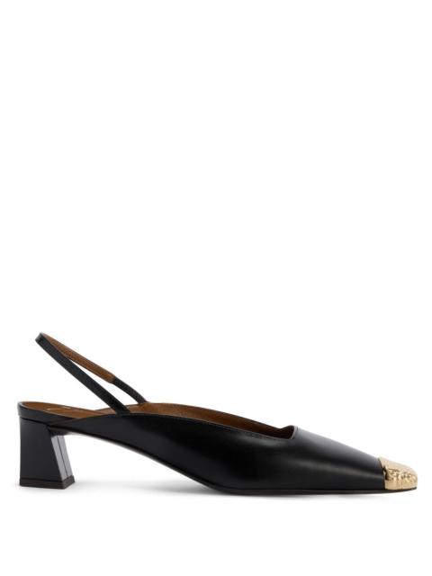 Product Details Patent leather slingback pumps with square topline and toe, rhinestoned maxi buckle, rear strap with elastic insert and chunky heel. - Black patent leather and black leather - Silver-colored metal maxi buckle accessory and crystal-colored rhinestones - Heel height: 45 mm - Brown leather sole with logo ORIGIN: ITALY COLOR: BLACK