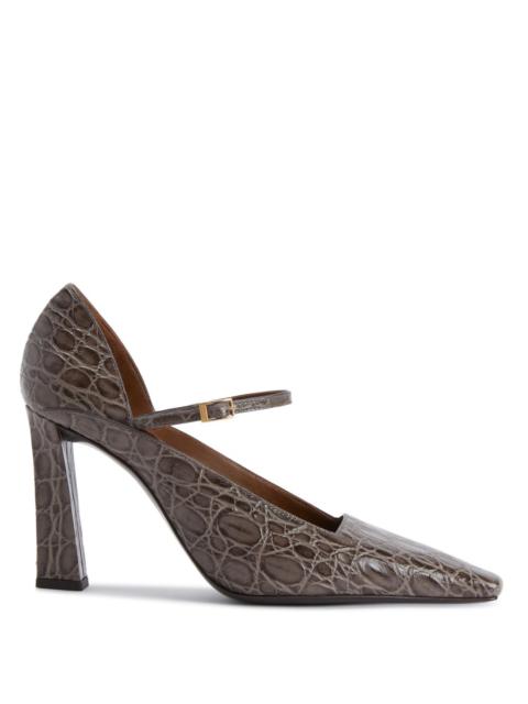 Product Details Mary Jane pumps in leather with square topline and toe, hammered metal toe detail and block heel. - Black leather - Gold-colored hammered metal toe accessory and gold-colored metal buckle - Heel height: 90 mm. - Brown leather sole with logo ORIGIN: ITALY COLOR: BLACK