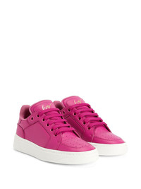 calf-leather lace-up sneakers Highlights - Fuchsia pink - Leather - Logo-print tongue - Perforated detailing - Front lace-up fastening - Contrasting rubber sole Made in Italy Composition Outer: Leather 100% Sole: Rubber 100% Lining: Mesh 100%
