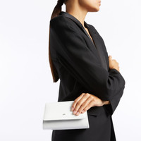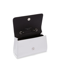 Product Details Clutch bag in patent leather with metal stitch detail, crystal-coloured rhinestones, chain shoulder strap, pocket and inner card slots. - White patent leather - Silver-coloured metal outer accessory and crystal-coloured rhinestones - Silver-coloured metal chain shoulder strap - Magnetic fastening - Leather and fabric interior with card slots and pocket - Size: 180 mm x 110 mm x 50 mm ORIGIN: ITALY COLOR: WHITE