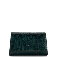 Product Details Crocodile-print leather clutch bag with metal detail, chain shoulder strap, pocket and inner card slots. - Dark green crocodile-print leather - Golden metal accessory - Golden metal chain shoulder strap - Magnetic fastening - Leather and fabric inner lining with card slots and pocket - Size: 180 mm x 110 mm x 50 mm ORIGIN: ITALY COLOR: GREEN