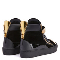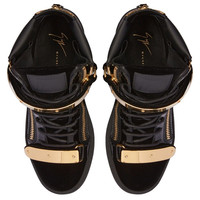 Product Details High-top lace-up sneakers in velvet and patent leather with two metal plaques, side zips and rubber sole. - Women's mid-top sneaker - Black velvet upper - Black patent leather insert - Rubber sole ORIGIN: ITALY COLOR: BLACK