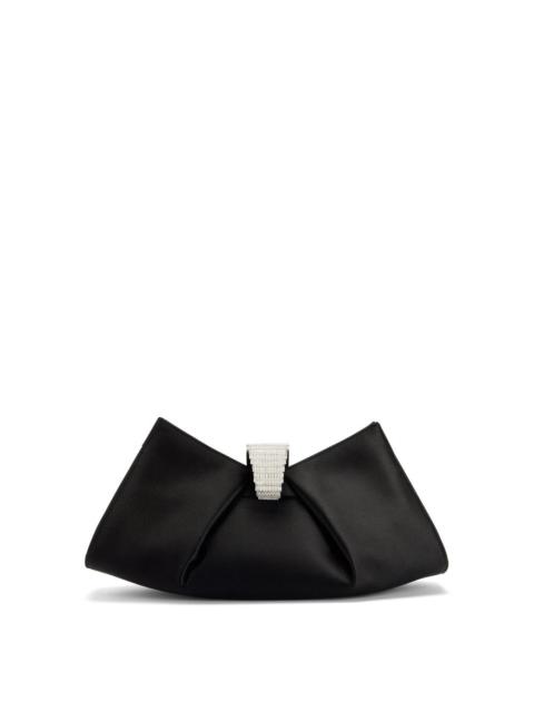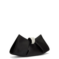 Product Details Satin clutch with baguette crystal embellishment and an inside card slot. - Black synthetic satin fabric - Silver metal embellishment with small crystal-colored baguettes - Magnetic fastening - Black leather and fabric lining with a card slot - Dimensions: 320 mm x 170 mm x 70 mm ORIGIN: ITALY COLOR: BLACK