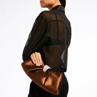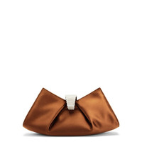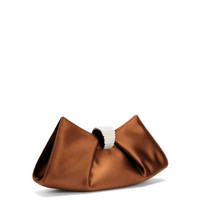 Product Details Satin clutch with baguette crystal embellishment and an inside card slot. - Brown synthetic satin fabric - Silver metal embellishment with small crystal-colored baguettes - Magnetic fastening - Black leather and fabric lining with a card slot - Dimensions: 320 mm x 170 mm x 70 mm ORIGIN: ITALY COLOR: BROWN