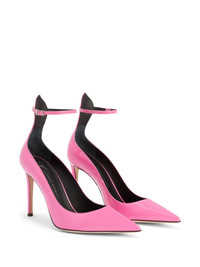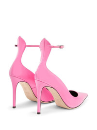 Cohralise 105mm leather pumps Highlights - Bubblegum pink - Leather - Patent finish - Pointed toe - Buckle-fastening ankle strap - Silver-tone hardware - Branded leather insole - 105mm high stiletto heel - Leather sole Made in Italy Composition Leather 100% SIZE & FIT Measurement HEEL 4.13 in(10.5 cm)