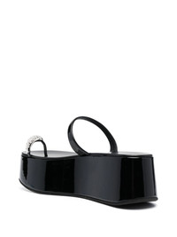 Crystal-embellished 70mm leather platform slides Highlights - Black - Calf leather - High-shine finish - Crystal embellishment - Single toe strap - Open toe - Slip-on style - Branded leather insole - Platform sole Made in Italy Composition Sole: Rubber 100% Outer: Calf Leather 100% Lining: Calf Leather 100% SIZE & FIT Measurement HEEL 2.75 in(7 cm) PLATFORM 2.16 in(5.5 cm)