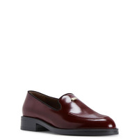 Product Details Grosgrain-trimmed loafers in glossy-finish leather with metal stitch detail and rubber sole. - Burgundy glossy-finish leather with black fabric trim - Light gold-colored metal detail - Heel height: 20 mm - Black rubber sole with logo ORIGIN: ITALY COLOR: BORDEAUX