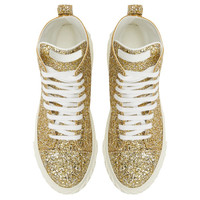 Product Details High-top sneakers crafted from platinum synthetic glitter fabric with white cotton laces, featuring a matching 'Label Signature' on the tongue; the eye-catching rubber 3D 'Blabber' sole gives the design a perfect finish. Glitter platinum synthetic fabric (54% RPET; 1% PET; 35% PL; 10% PU) Glitter anthracite-grey synthetic fabric (54% RPET; 1% PET; 35% PL; 10% PU) Rubber sole with logo Made in Italy