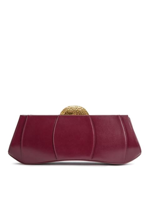Product Details Leather clutch bag with metal closure, chain shoulder strap and inner pocket. - Black leather - Golden metal bag closure - Golden metal chain shoulder strap - Leather and fabric interior with card slots and pocket - Size: 320 mm x 110 mm x 60 mm ORIGIN: ITALY COLOR: BLACK