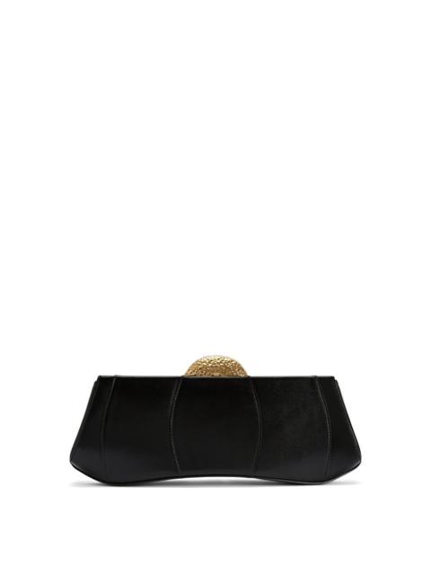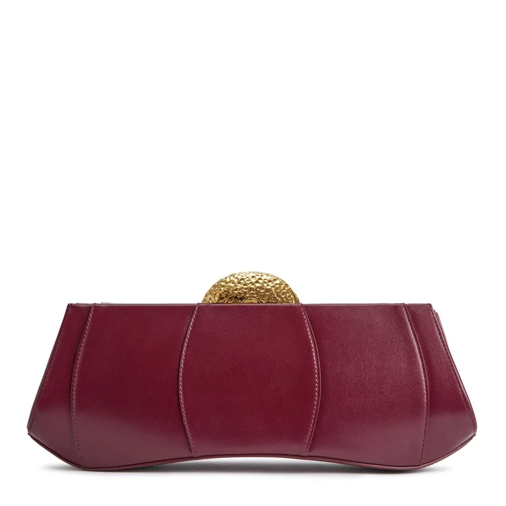 Product Details Clutch bag in leather with metal closure, chain shoulder strap and small inner pocket. - Upper: 100% lambskin - Lining: fabric ORIGIN: ITALY COLOR: BORDEAUX
