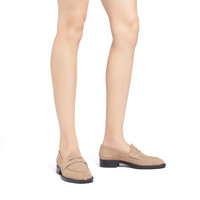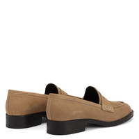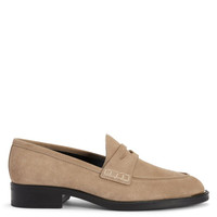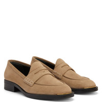 Product Details These penny loafers are crafted from beige velour and feature a black rubber sole, a cut-out strap that crosses the vamp and a golden metal detail on the insole tips. Beige velour Golden metal detail on the sole tip 20 mm heel Black rubber sole with logo Made in Italy