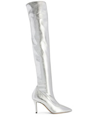 90mm Felicity thigh-high boots Highlights - Silver-tone - Faux leather - Laminated finish - Metallic sheen - Elasticated trim - Logo studs - Pointed toe - High stiletto heel - Leather sole - Stretch-design - Pull-on style Made in Italy Composition Other fibres 100% SIZE & FIT Measurement HEEL 3.54 in(9 cm)