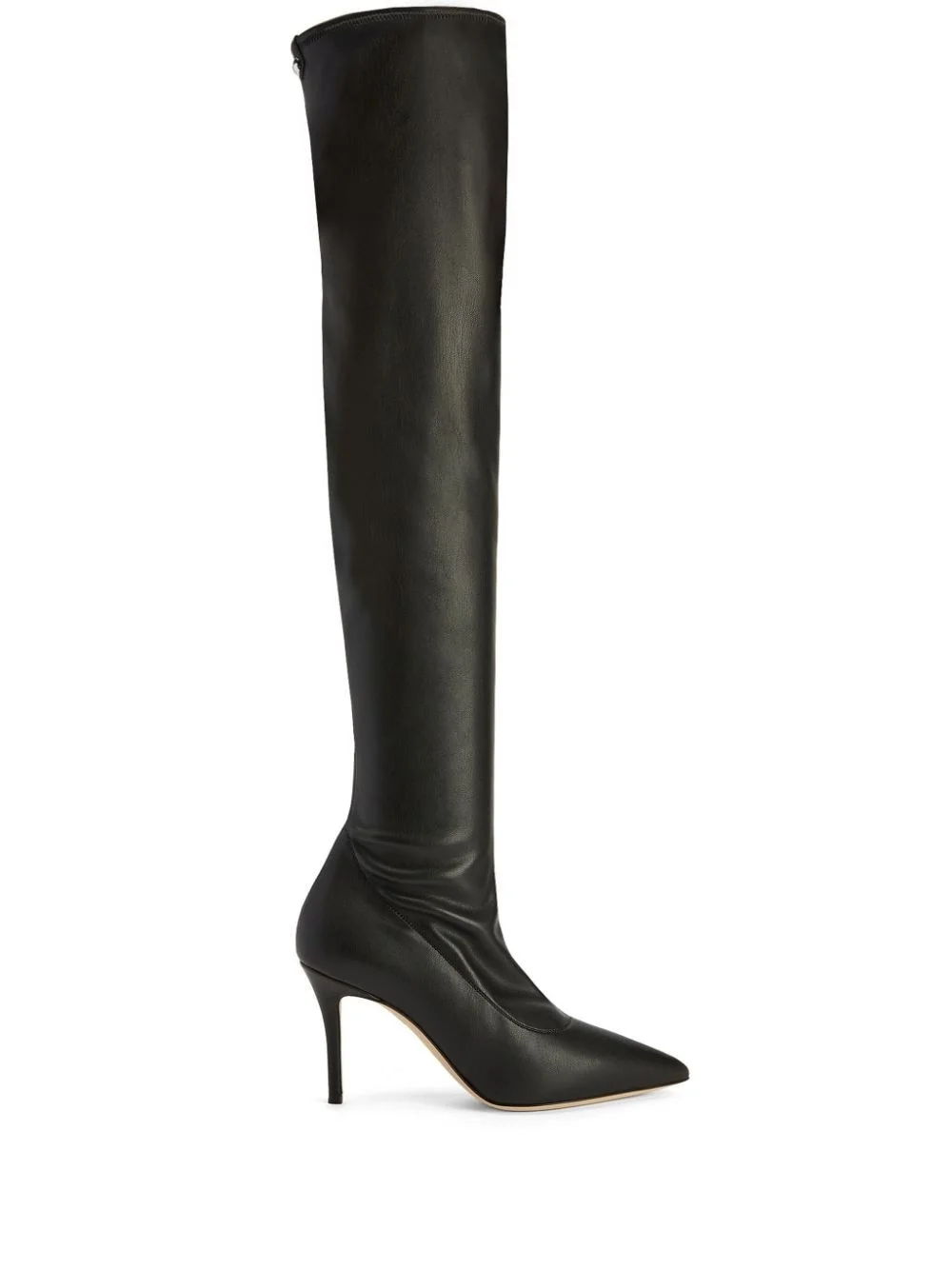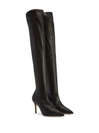 Felicity 90mm thigh-high boots Highlights - Black - Silver-tone logo plaque - Pointed toe - Thigh-high - Leather sole - 90mm high stiletto heel Made in Italy Composition Outer: Polyester 59%, Resin 49% Sole: Leather 100% SIZE & FIT Measurement HEEL 3.54 in(9 cm)