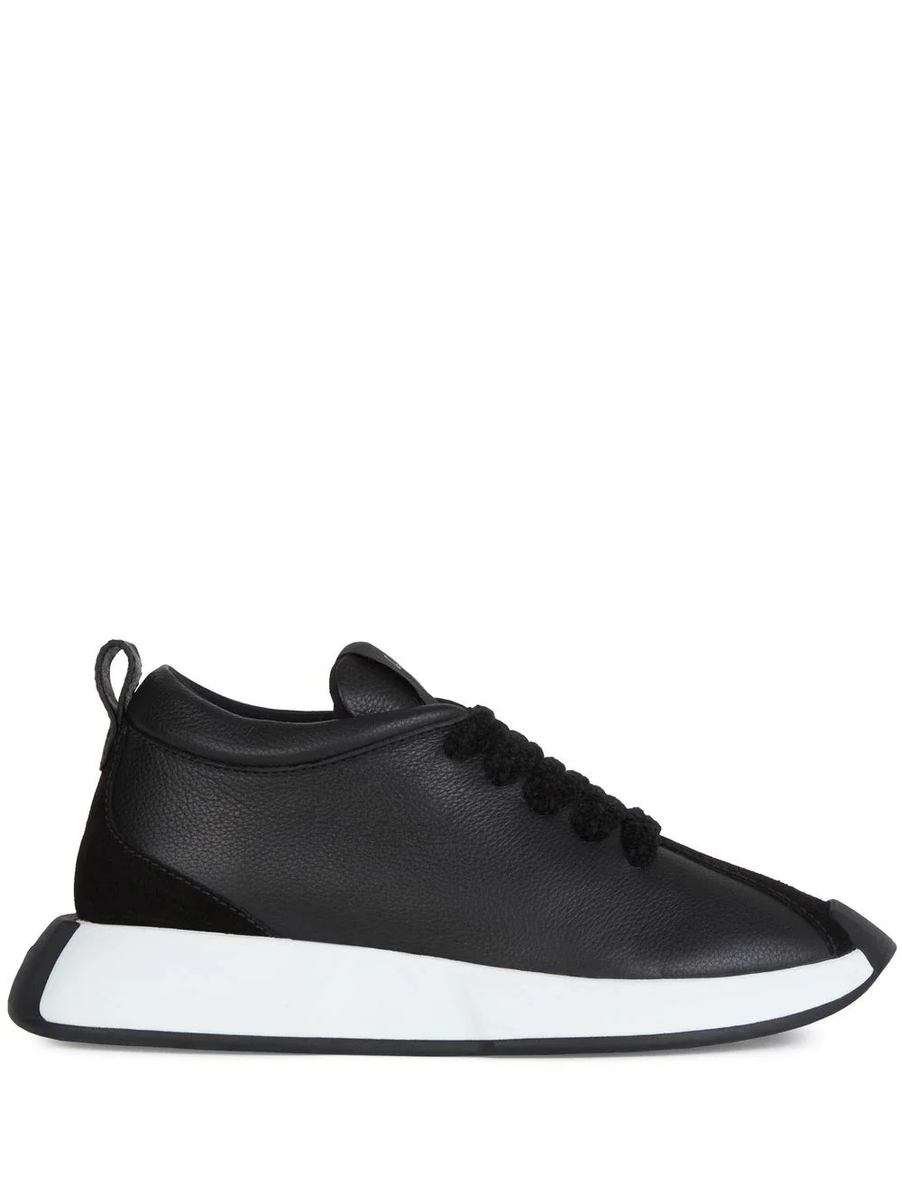 Ferox low-top sneakers black/white leather grained texture velvet laces round toe logo patch at the tongue branded insole pull-tab at the heel flat rubber sole Made in Italy Composition Leather 100%