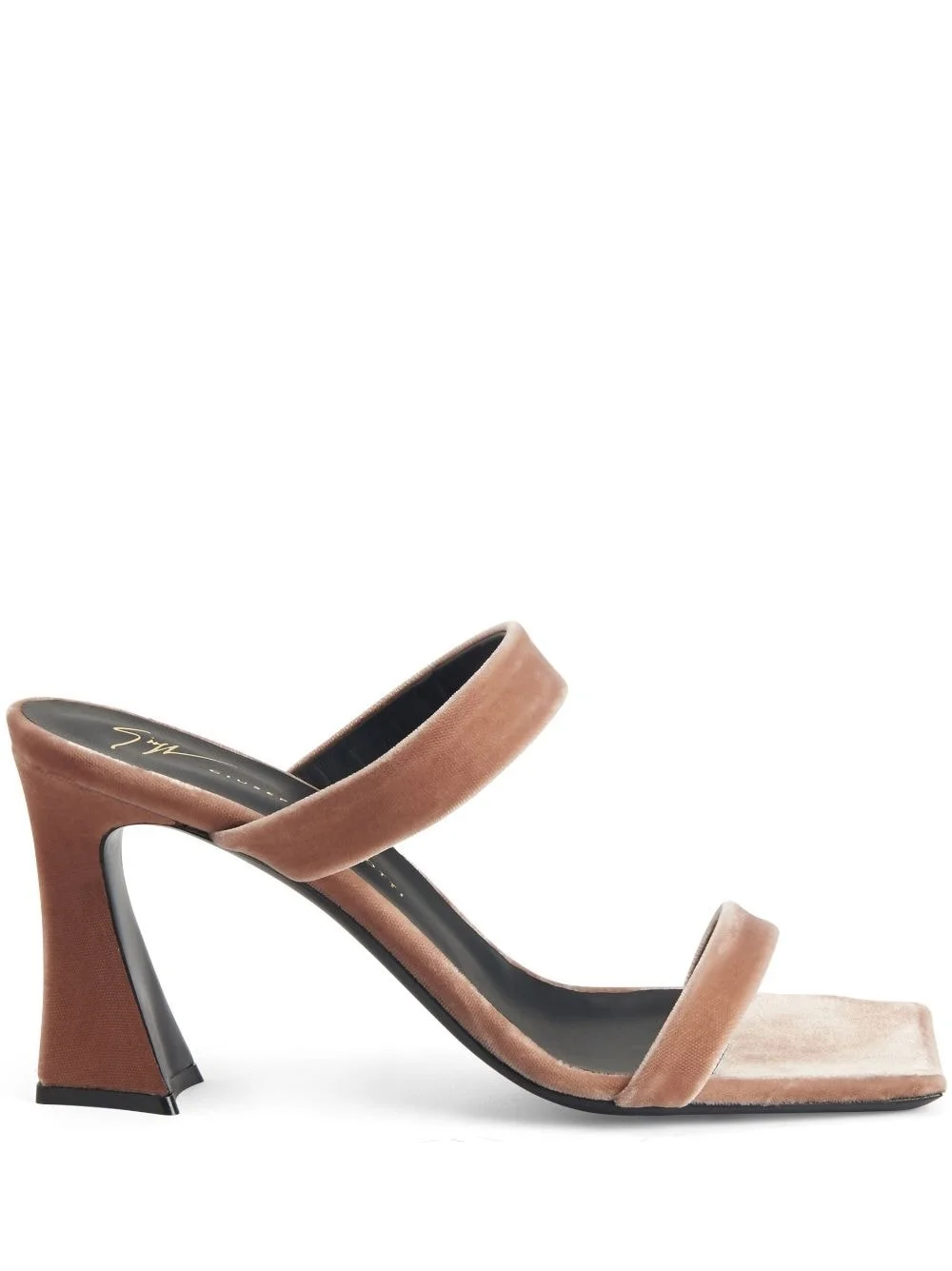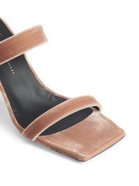 85mm Flaminia velvet sandals Highlights - Light brown - Velvet effect - Leather - Branded insole - Open toe - Slip-on style - 85mm - Double-strap design - High block heel Made In Italy Composition Outer: Polyurethane 100% Lining: Leather 100% Sole: Leather 100%
