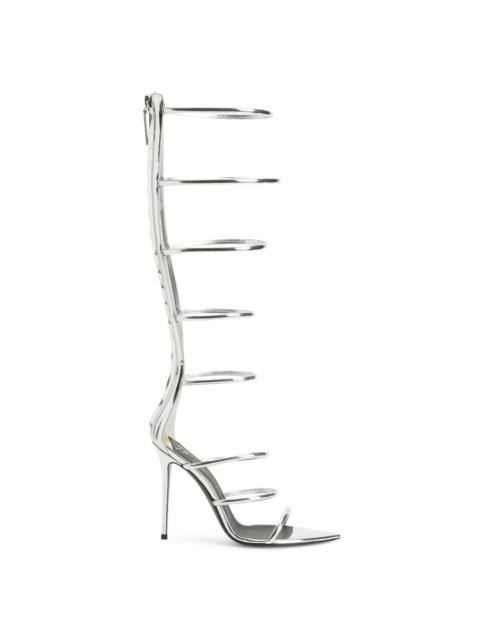 Product Details These black laminated leather sandals feature a square toe and matching covered chunky heels and platform, and are characterised by thin straps and long ankle laces for an adjustable closure along the leg. Black laminated leather Black laminated leather ankle laces 120 mm heel covered in black laminated leather 40 mm platform covered in black laminated leather Leather sole with logo Made in Italy