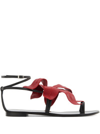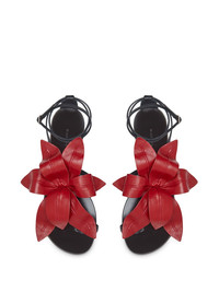 floral applique sandals Black leather floral applique sandals from Giuseppe Zanotti featuring floral appliques, an open toe, multiple front straps, an ankle strap with a side buckle fastening and a flat sole. Made in Italy Composition Outer: Calf Leather 100% Lining: Calf Leather 100% Sole: Calf Leather 100%