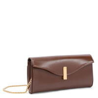 Product Details Clutch bag in leather with branded metal closure, chain shoulder strap, pocket and inner card slots. - Light brown leather - Branded golden metal closure - Golden metal chain shoulder strap - Leather and fabric interior with card slots and pocket - Size: 230 mm x 120 mm x 30 mm ORIGIN: ITALY COLOR: BROWN