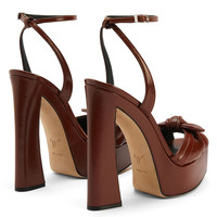 Product Details These square toe platform sandals, crafted from light-brown leather, feature matching covered chunky heels, knotted bands on the front, an adjustable ankle strap with silver metal side buckles and leather soles with logo. Light-brown leather upper with knot Adjustable light-brown leather strap Silver metal buckle 145 mm platform covered in light brown leather Leather sole with logo Origin Italy Color Brown More Less