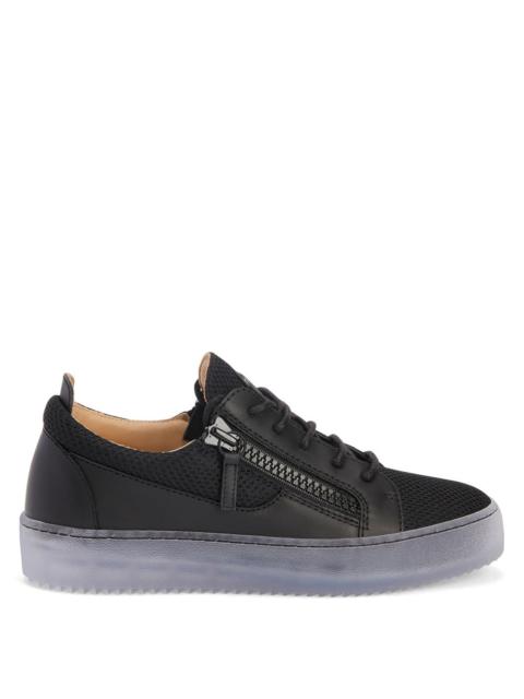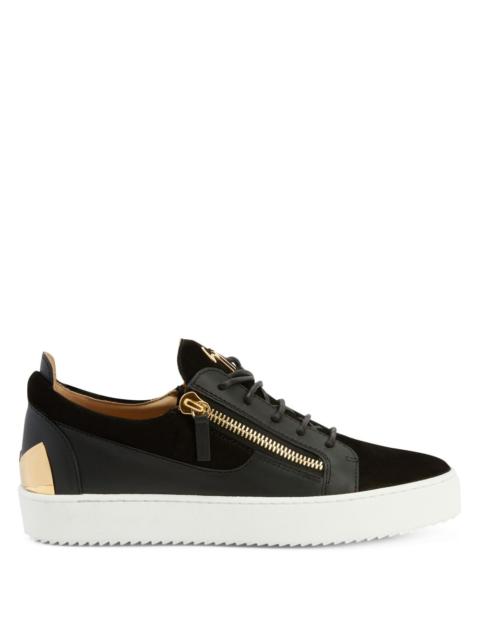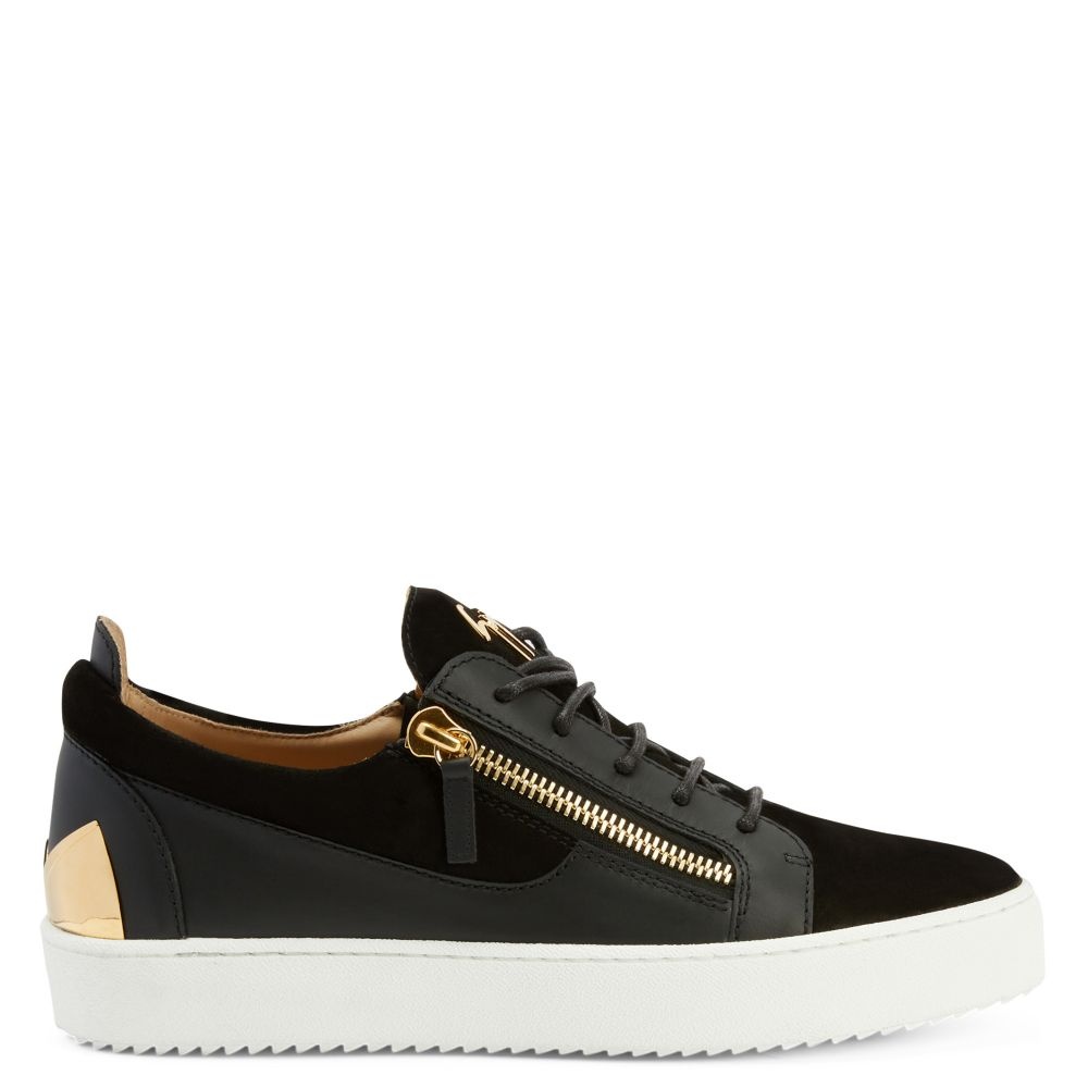 Product Details These low-top sneakers are crafted from black suede and leather; the design features matching cotton laces, golden metal ‘Graffio’ hardware on the back of the heel, a 'Signature' detail in golden metal on the tongue and matching side zipper fastenings on the upper; white rubber soles give the design a perfect finish. Black suede and leather Golden metal 'Signature' hardware Golden metal 'Graffio' hardware on heel Black cotton laces Golden metal zippers White rubber sole with logo Made in Italy