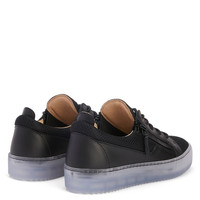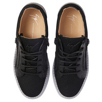 Product Details These iconic and unmistakable Zanotti low-top sneakers have been reworked with an upper crafted in black leather and matching synthetic mesh fabric, and feature black rubberised metal 'Signature' hardware, matching cotton laces, plastic side zip fasteners and transparent rubber soles. Black leather and black synthetic mesh fabric (100% PL) Black rubberised metal 'Signature' Black cotton laces Black plastic zippers Transparent rubber sole with logo Made in Italy