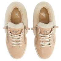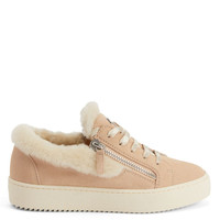 Product Details These low-top sneakers are crafted from beige velour with off-white shearling inner lining and matching diamond-shape pattern cotton laces and feature an off-white rubber sole, silver metal side zipper fastenings and 'Signature' details on the tongue. Women's sneakers Beige velour and off-white shearling Off-white shearling inner lining Silver metal 'Signature' hardware Off-white cotton laces with beige diamond-shape pattern Off-white rubber sole with logo Made in Italy