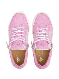 Gail glitter sneakers pink leather glitter detailing zip detail front lace-up fastening round toe flat rubber sole branded leather insole Made in Italy Composition Rubber 100%