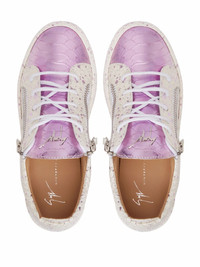 Gail silver sneakers silver leather panelled design snakeskin effect paint splatter detail metallic effect zip detail front lace-up fastening round toe flat rubber sole branded leather insole Made In Italy Composition Leather 100% SIZE & FIT Measurement HEEL 1.18 in(3 cm) Sole height 0.98 in(2.5 cm)