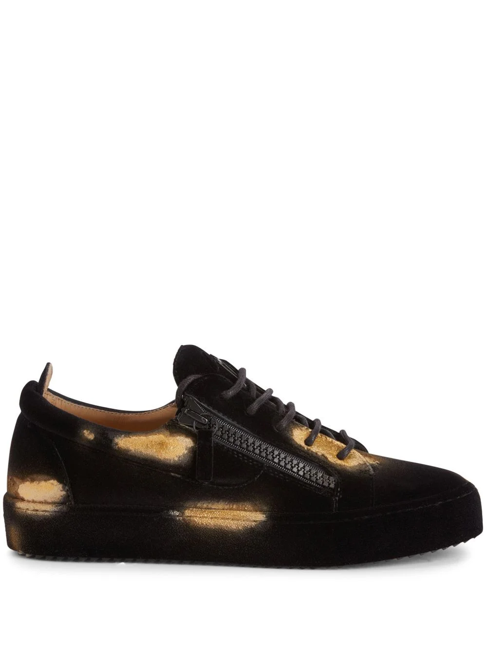 Gail suede sneakers Highlights - Black/gold-tone - Suede - Abstract pattern print - Branded footbed - Side zip fastening - Logo-embossed tongue - Front lace-up fastening - Round toe - Flat rubber sole Made in Italy Composition Outer: Fabric 100% Sole: Rubber 100% Lining: Leather 100%