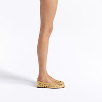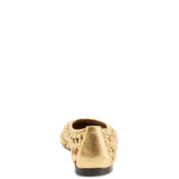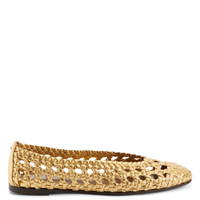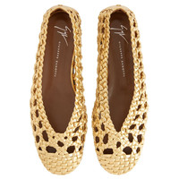 Product Details Woven leather ballerinas with metal stitch detail. - Laminated golden woven leather - Golden metal accessory - 05 mm-high heel - Brown leather sole with logo ORIGIN: ITALY COLOR: GOLD