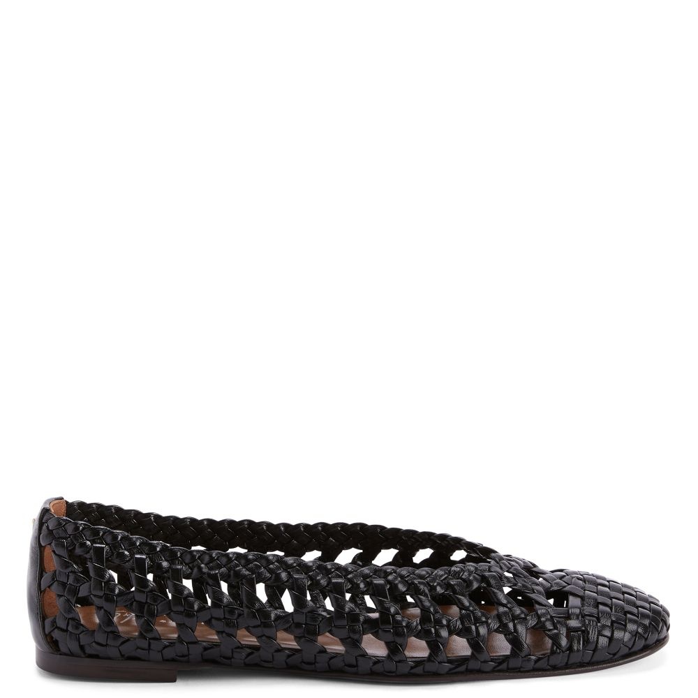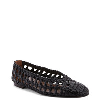 Product Details Woven leather ballerinas with metal stitch detail. - Black woven leather - Golden metal accessory - 05 mm-high heel - Brown leather sole with logo ORIGIN: ITALY COLOR: BLACK
