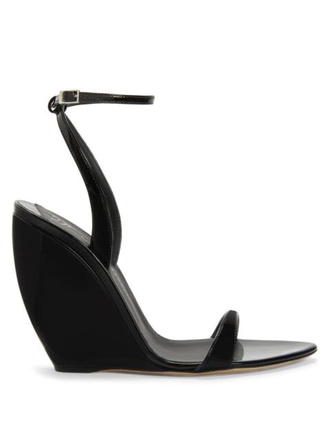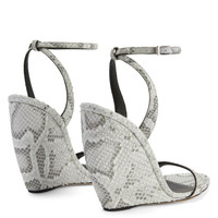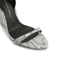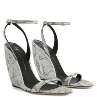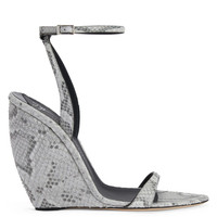 Product Details These sandals are crafted from rock-grey python-print leather and feature a smooth matching covered curved wedge, a matching adjustable ankle strap with silver buckle and a black leather sole. Rock-grey, python-print leather Adjustable strap in rock-grey python-print leather with silver metal buckle 105 mm wedge Wedge covered in rock-grey python-print leather Leather sole with logo Made in Italy