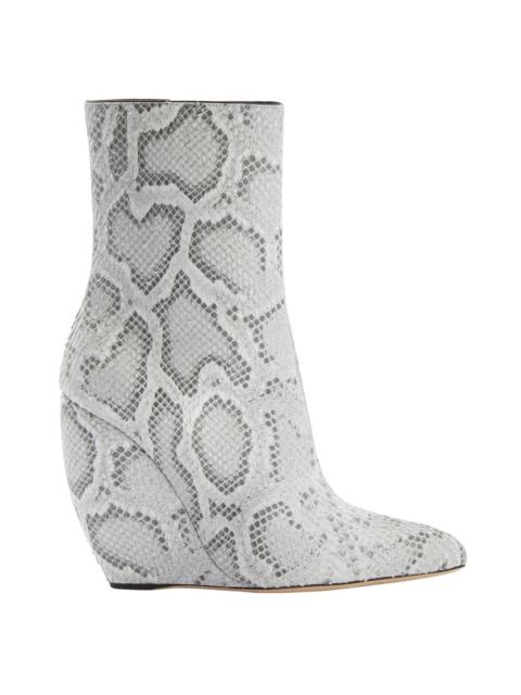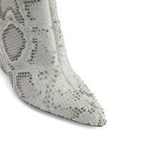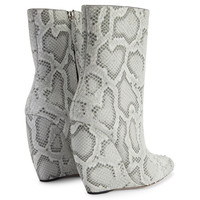Product Details These ankle boots, crafted from python-print rock-grey leather, feature a black and silver zipper on the inner side and a smooth matching covered curved wedge. Rock-grey, python-print leather Black and silver metal zipper on the inner side 105 mm wedge Wedge covered in rock-grey python-print leather Leather sole with logo Made in Italy