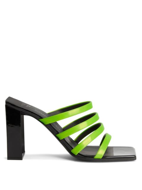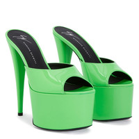 Product Details These open-toe mules, crafted from neon-green patent leather with a leather sole, feature matching covered stiletto heels and platform. Neon-green patent leather 60 mm platform covered in neon-green patent leather 150 mm heel covered in neon-green patent leather Leather sole with logo Made in Italy