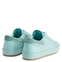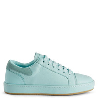 Product Details These low-top sneakers, crafted from light-blue leather and velour with matching cotton laces, feature a high-frequency 'Graffio' processing on the tongues and a hot-stamped 'Logo Lettering' detail on the back of the upper, matching rubber soles give the design a perfect finish. Women's sneakers Light-blue leather and velour High-frequency 'Graffio' processing on label Hot-stamped 'Logo Lettering' on the back Light-blue cotton laces Rubber sole with logo, covered in light-blue leather Made in Italy