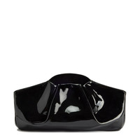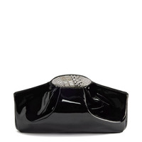 Product Details Patent clutch bag with snap fastening, jewel accessory with pave-set crystals and inner leather strap. - Material: 100% patent goatskin - Lining: Fabric ORIGIN: ITALY COLOR: BLACK