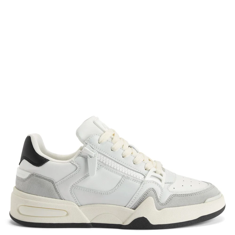 Product Details Low-top lace-up sneakers in leather and suede leather with two side zippers and rubber sole. - Womens sneakers - Black and white leather and gray suede leather - White rubber-topped accessories and white lace loop detail - Off-white lacing - White zippers - Off-white rubber sole and black tread with logo ORIGIN: ITALY COLOR: WHITE