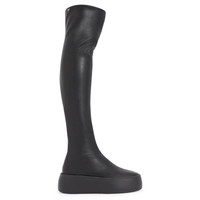 Product Details Sneaker boots in leather-look fabric with a large rubber sole. - Women's sneakers - Synthetic fabric with a black leather finish - Black technical fabric interior - Silver metal Signature - Black rubber sole with logo ORIGIN: ITALY COLOR: BLACK