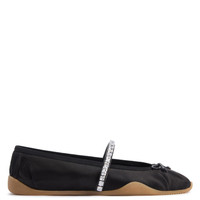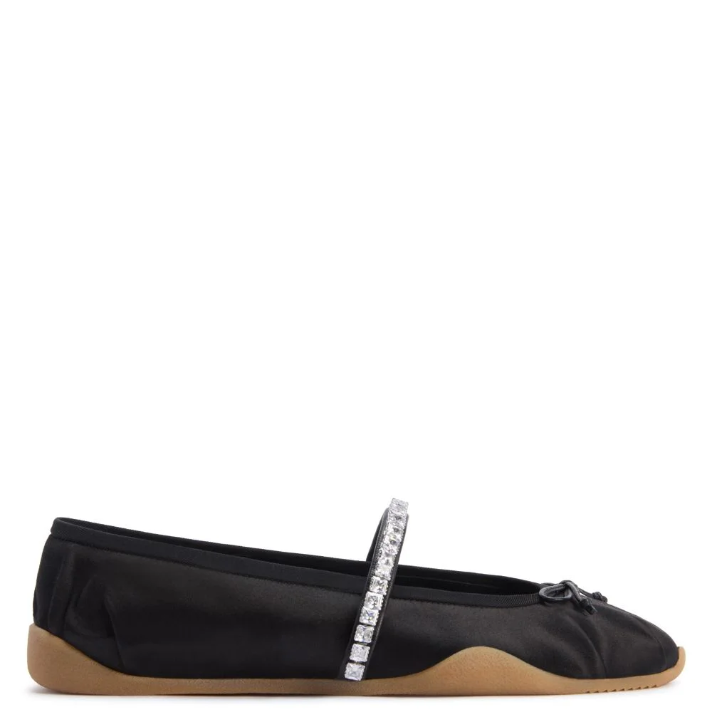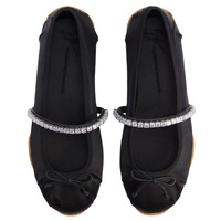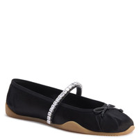 Product Details Mary Jane ballet flats in satin with darts, bow, rhinestone band and honey-colored rubber sole. - black silk satin - crystal-colored rhinestones - honey-colored rubber sole ORIGIN: ITALY COLOR: BLACK
