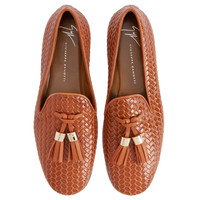 Product Details Grosgrain-trimmed loafers in woven-print leather with leather tassels and metal detail. - Light brown woven-print leather with light brown leather edge - Light brown leather tassels with golden metal accessory - 05 mm-high heel - Brown leather sole with logo ORIGIN: ITALY COLOR: BROWN