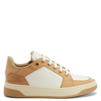 Product Details These low-top sneakers, crafted from white leather and beige leather and patent leather, feature matching cotton laces and rubberised eyelets, a golden hot-stamped 'Signature' detail on the tongue, a golden 'Logo Lettering' print on the back of the upper and white rubber soles with beige treads. - Women's sneakers - White and beige leather and beige patent leather - Golden hot-stamped 'Signature' on label - Golden 'Logo Lettering' print on the back - Beige cotton laces and black rubberised eyelets - Off-white rubber sole and beige tread with logo - Made in Italy ORIGIN: ITALY COLOR: WHITE