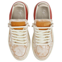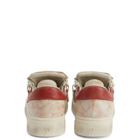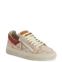 Product Details Low-top lace-up sneakers in leather with two tonal side zips and rubber sole. - Women's sneakers - White leather with red and light brown leather details - Hot-stamped Signature on the label - Off-white laces - Off-white zip - Off-white rubber sole with logo ORIGIN: ITALY COLOR: RED