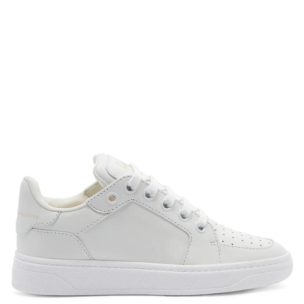 Product Details Low-top lace-up sneakers in leather with rubber sole. - Women's sneakers - White leather - Golden hot-stamped 'Signature' on label - Golden 'Logo Lettering' print on the back - White cotton laces and matching lacquered eyelets on the upper - White rubber sole with logo ORIGIN: ITALY COLOR: WHITE