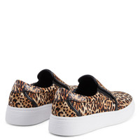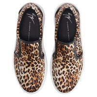 Product Details These slip-on sneakers, crafted from silk and leather with a natural-looking spotted print, feature white rubber soles and black leather inner lining and are characterised by a debossed silver ‘GZ’ logo on the back of the upper. Women's sneakers Silk and leather with natural-looking leopard print Debossed silver 'GZ' logo on the back Black leather inner lining White rubber sole with logo Made in Italy