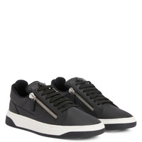 Product Details Low-top lace-up sneakers in leather with two tonal side zips and two-tone rubber sole. - Black leather - Black lacquered metal 'Signature' - Black cotton laces - Silver metal zipper - White rubber sole and black tread with logo ORIGIN: ITALY COLOR: BLACK