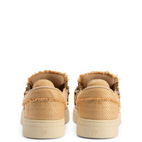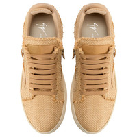 Product Details Low-top lace-up sneakers in raffia and leather with two tonal side zips and rubber sole. - Men's sneakers - Woven raffia with fringing and natural-coloured leather - Hot-stamped Signature on the label - Beige lacing - Beige zip - Off-white rubber sole with logo ORIGIN: ITALY COLOR: BEIGE