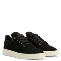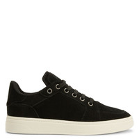 Product Details Low-top suede lace-up sneakers with rubber sole. - Men's sneakers - Black suede - Hot-pressed Signature on the label - Hot-pressed logo lettering on the back of the upper - Black laces and aged silver-coloured metal eyelets - Off-white rubber sole with logo ORIGIN: ITALY COLOR: BLACK