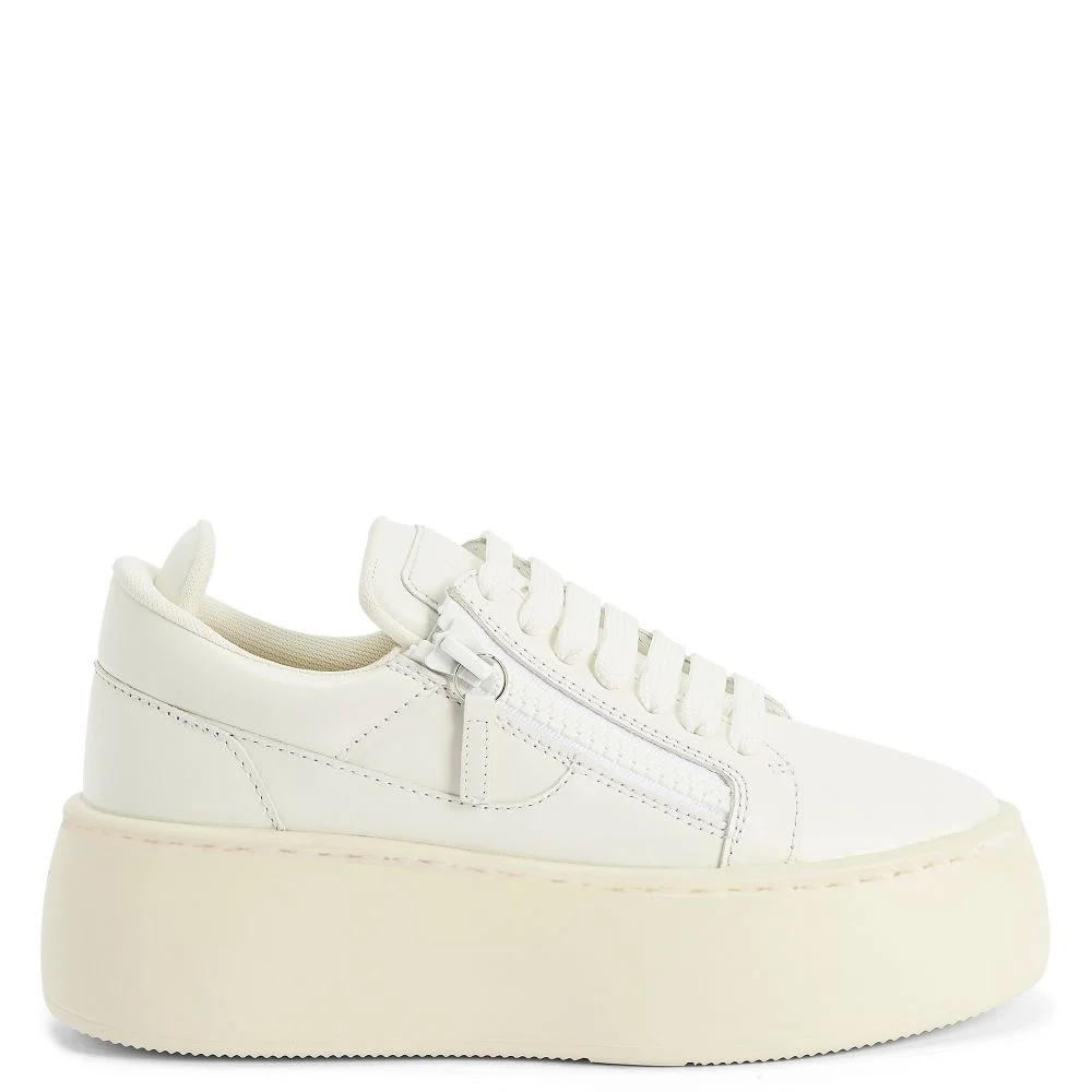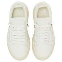 Product Details Low-top lace-up sneakers in leather with rubber maxi sole. - Women's sneakers - White leather - High frequency-processed Signature on the label - White lacing - White zips - Off-white rubber sole with logo ORIGIN: ITALY COLOR: WHITE
