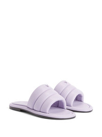 Harmande quilted flat slides Highlights - Lilac purple - Quilted - Padded design - Rubberised logo detail - Round open toe - Slip-on style - Branded insole - Flat leather sole Made in Italy Composition Other fibres 100%